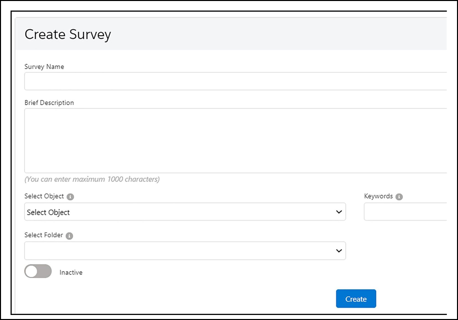 - Select Object- Select the Salesforce object for which you want to create a Survey.