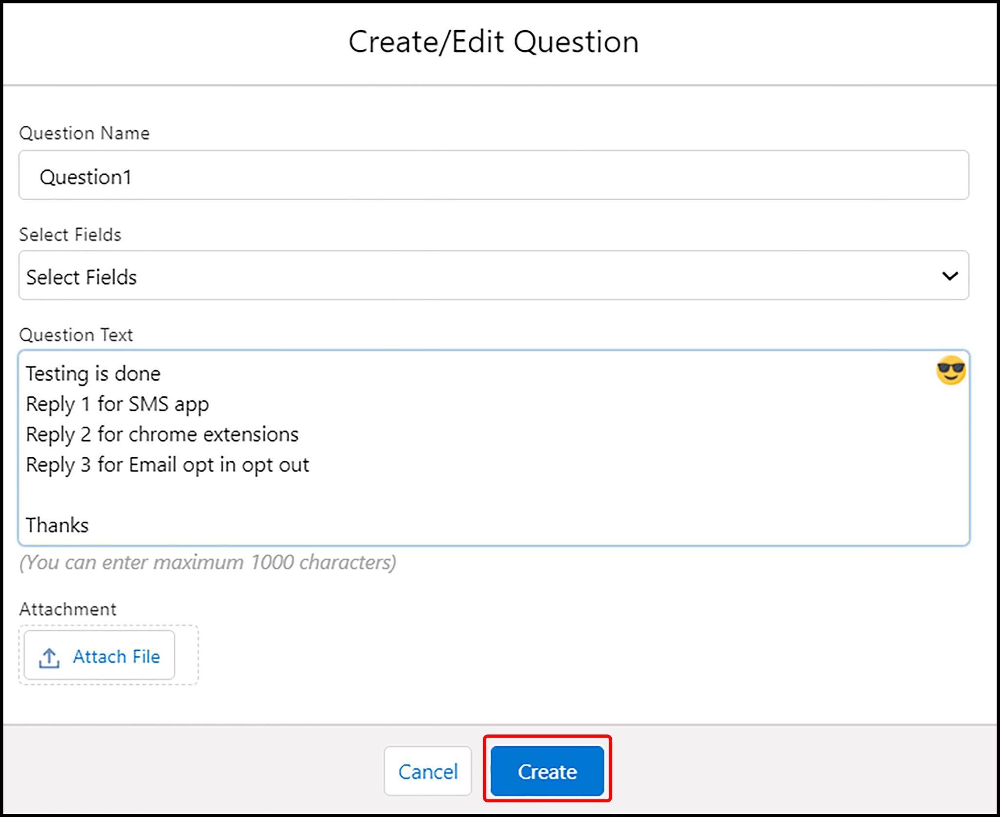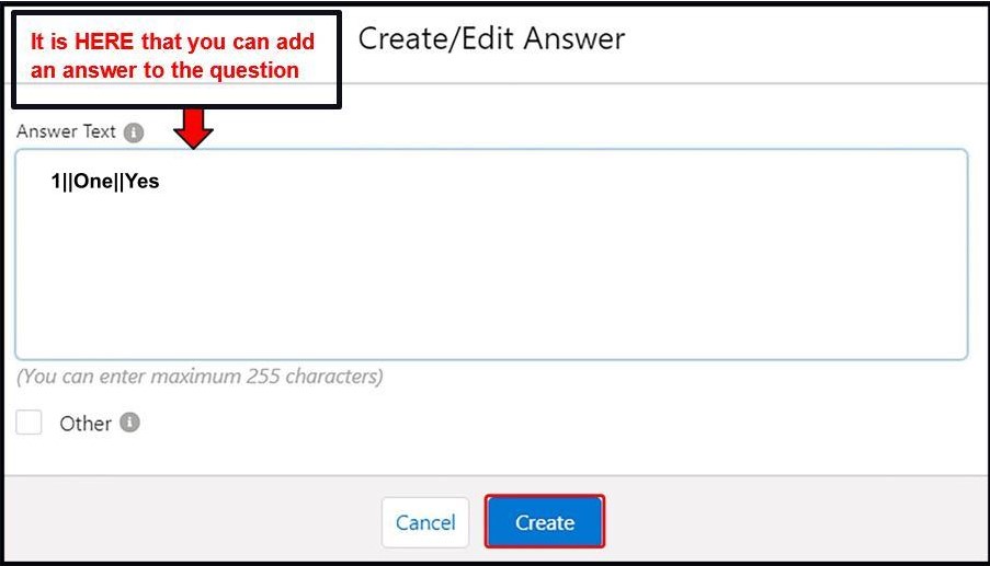 After filling in all the details, click Create, and the question will be added to the Survey or a Questionnaire.