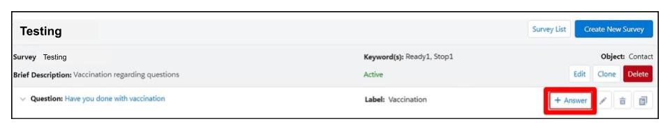 After clicking the Create button, you can see the added question in the Survey. An example is shown below.