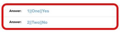 You can also add acceptable synonyms separated by a double pipe (‘||’) to each answer.