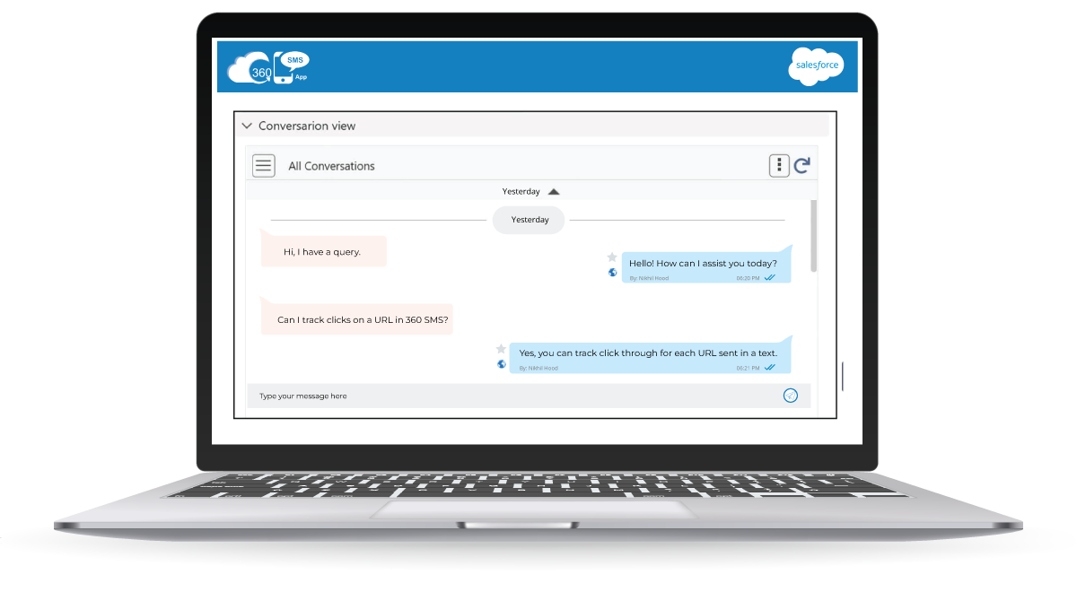 The best way to send SMS from Salesforce is by using 360 SMS. The app comes with 11 pre-integrated channels, eliminating the need for separate integration for each channel. Plus, it offers numerous out-of-the-box capabilities to transform business communications and be innovative with text operations. The app provides everything one could expect for unique use cases. Here’s a glimpse of some 360 SMS revolutionary features.