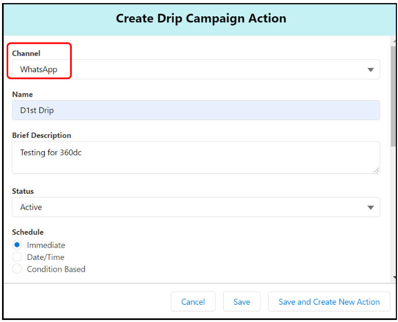 Choosing WhatsApp as a channel for a drip campaign message